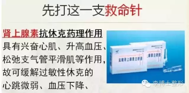 2、立即给予救命针:肌注肾上腺素0.5-1mg。必要时,每5~10分钟重复一次,然后肌肉注射抗过敏药异丙嗪25-50mg或苯海拉明40mg。