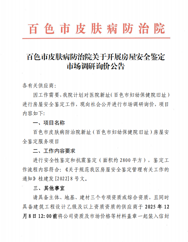 为了方便广大群众就医,百色市皮肤病防治院百胜门诊国庆期间不放假,具体工作时间如下: