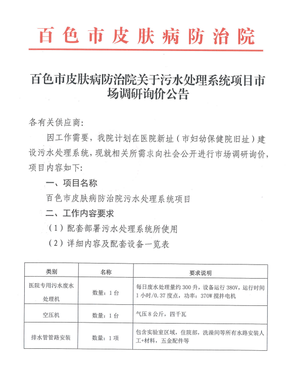 百色市皮肤病防治院关于污水处理系统项目市