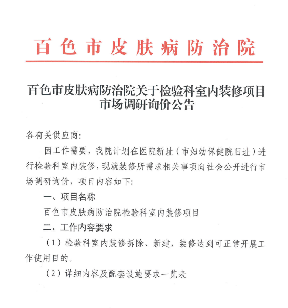 百色市皮肤病防治院关于检验科室内装修项目
