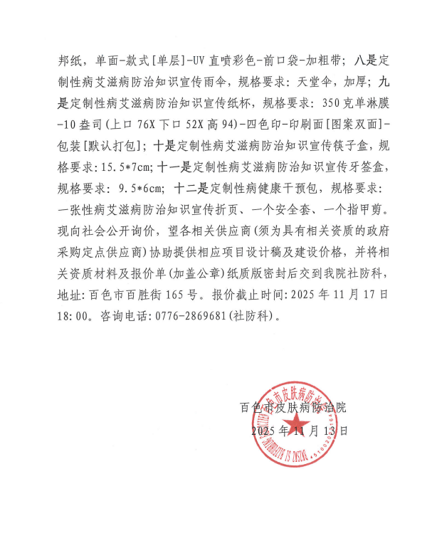 百色市皮肤病防治院询价函