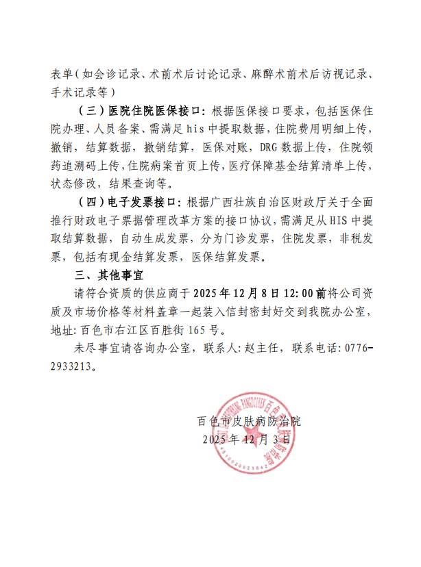 百色市皮肤病防治院关于 HIS 系统软件模块增设项目市场调研询价公告