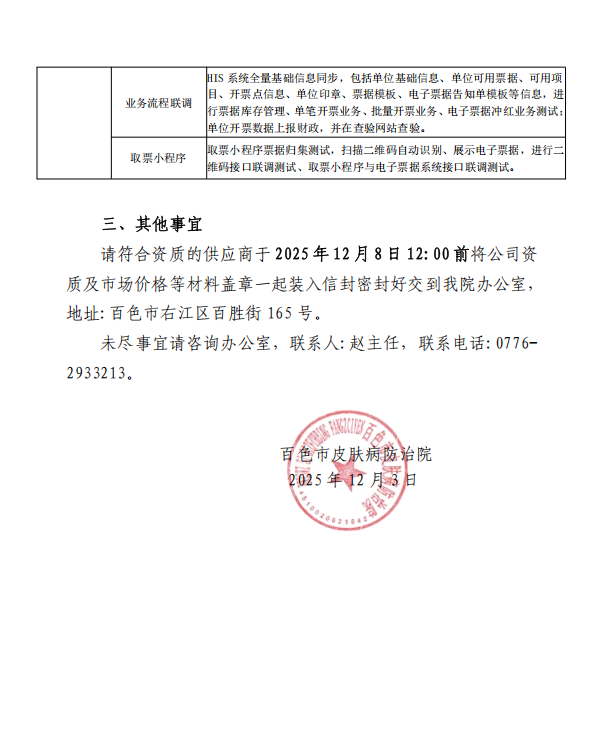 百色市皮肤病防治院关于电子票据管理系统项目市场调研询价公告