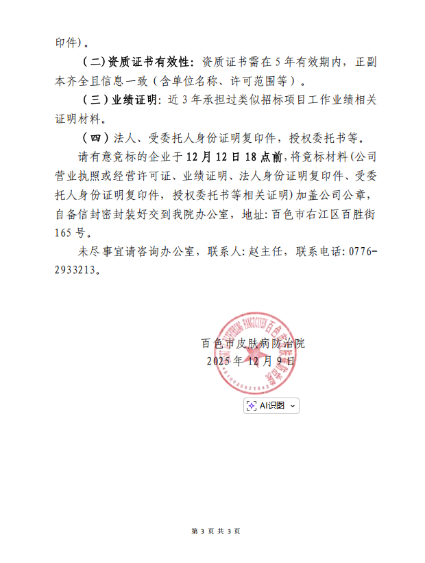 百色市皮肤病防治院关于开展房屋安全鉴定服务项目采购公告