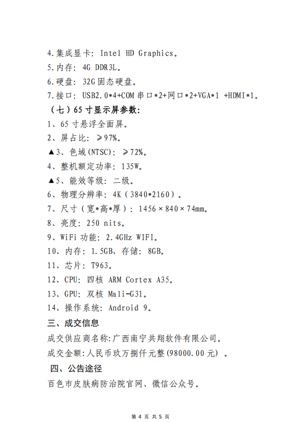 百色市皮肤病防治院关于 HIS 系统硬件:增设项目成交公告