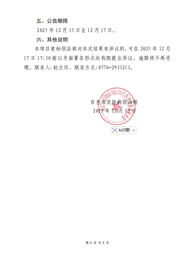 百色市皮肤病防治院关于 HIS 系统软件模块增设项目成交公告