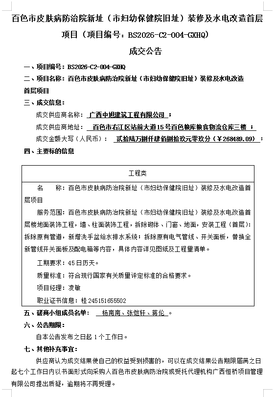 百色市皮肤病防治院关于网络搭建与设备采购项目成交公告